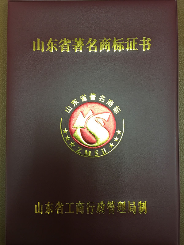 根据省工商局《关于认定山东省著名商标的通知》和市工商局《关于我市48件新获认定和109件续展认定山东省著名商标的通报》,我公司注册商标继2013年10月获得市著名商标后,本次成功申获山东省著名商标,有效期三年。