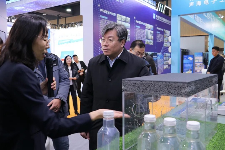 董事长巩光磊向山东省住建厅厅长王玉志介绍海德信达新材料情况